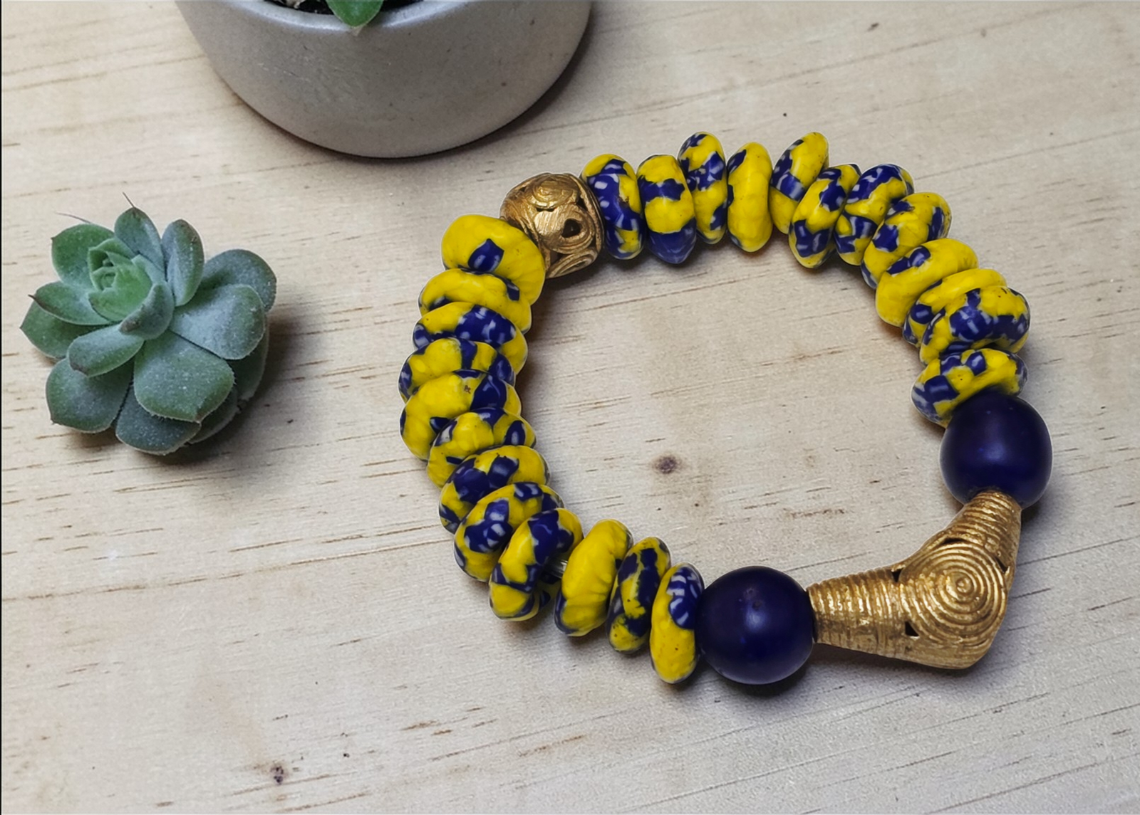 Our handmade bracelets are crafted with care and detail, blending tradition with contemporary style. Each bracelet uniquely reflects Ghana's heritage and is designed by skilled artisans who take pride in their work. Whether you prefer something bold or straightforward, these bracelets add a meaningful touch to any outfit. Comfortable and versatile, they’re perfect for everyday wear or special occasions, letting you carry a piece of authentic craftsmanship wherever you go.