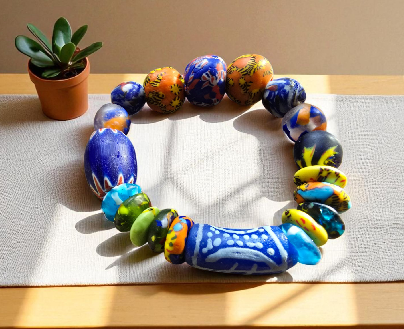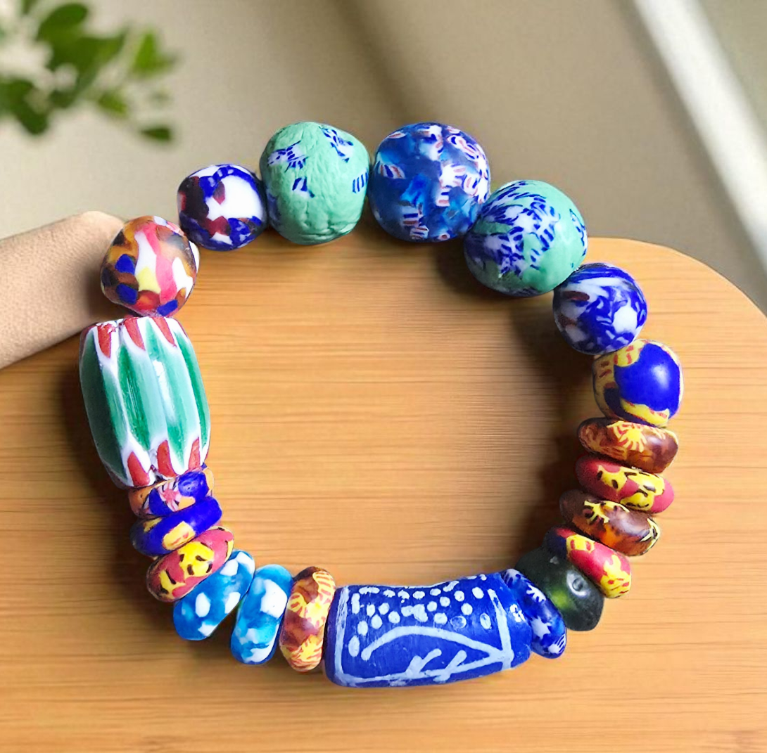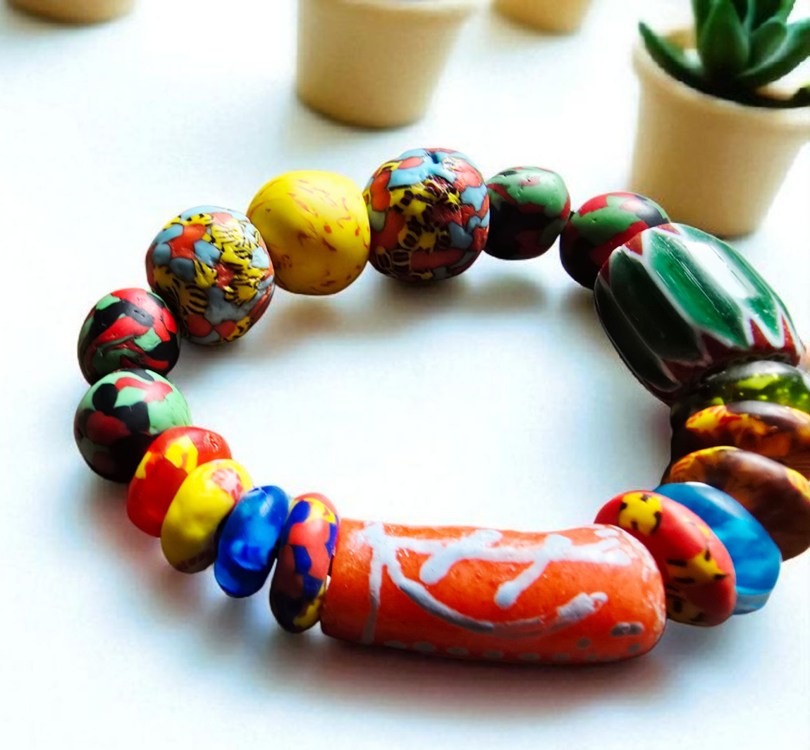 Our handmade bracelets are crafted with care and detail, blending tradition with contemporary style. Each bracelet uniquely reflects Ghana's heritage and is designed by skilled artisans who take pride in their work. Whether you prefer something bold or straightforward, these bracelets add a meaningful touch to any outfit. Comfortable and versatile, they’re perfect for everyday wear or special occasions, letting you carry a piece of authentic craftsmanship wherever you go.