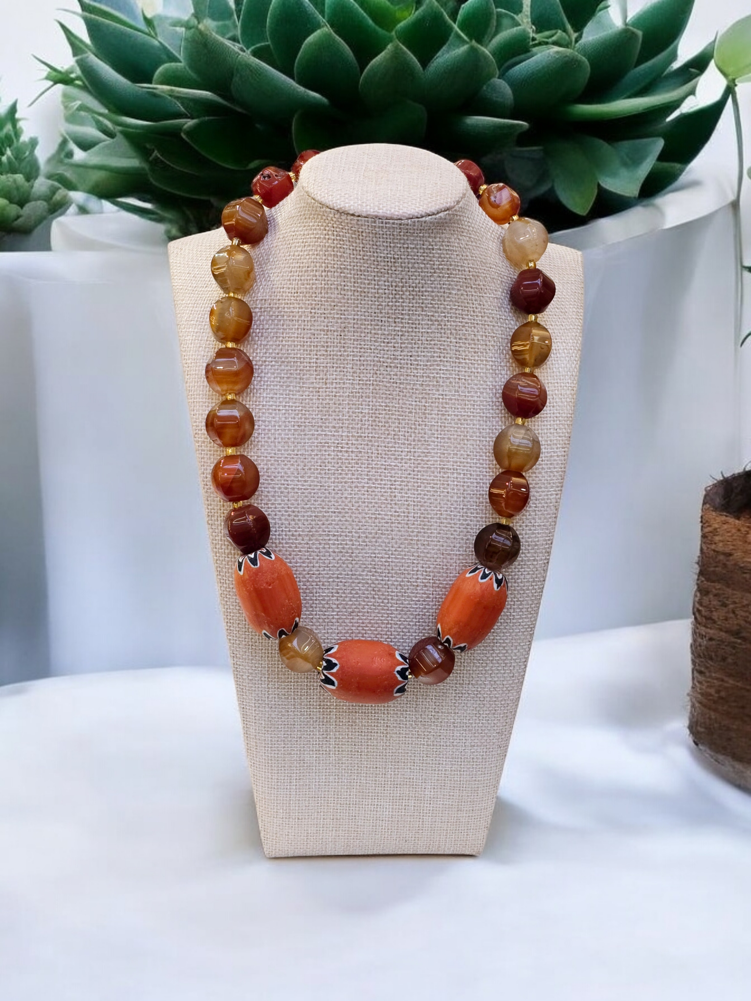 Our handmade necklaces are crafted with care by our partners, who bring a touch of culture and tradition to each piece. These necklaces aren't just accessories—they carry stories of heritage and craftsmanship. Whether you're looking for something bold or subtle, each design reflects the beauty of Ghanaian artistry. These necklaces are perfect for everyday wear or special occasions and add a unique and meaningful touch to your style.