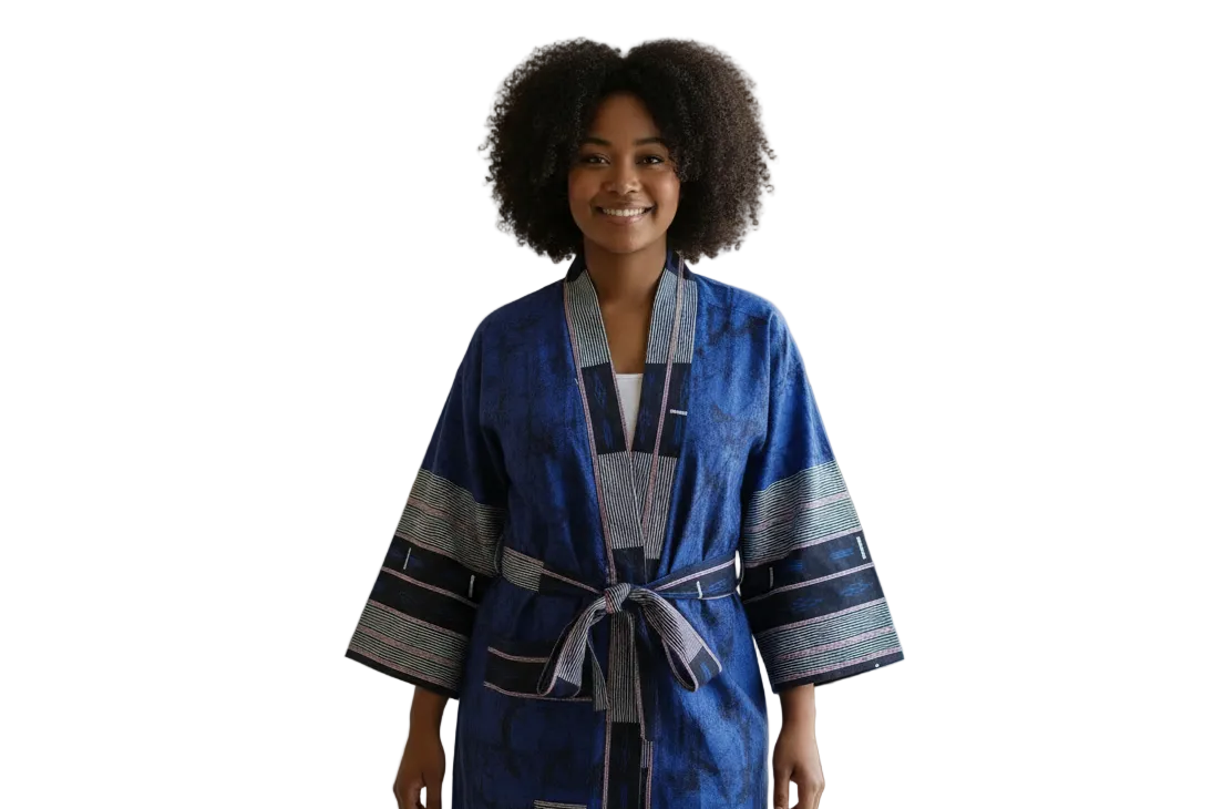 The Nanabea Kimono by Kwadwo is a statement of quiet authority and ease. Nanabea means Queen Mother in Akan—a title that represents wisdom, leadership, and grounding; and this piece carries that spirit with intention.