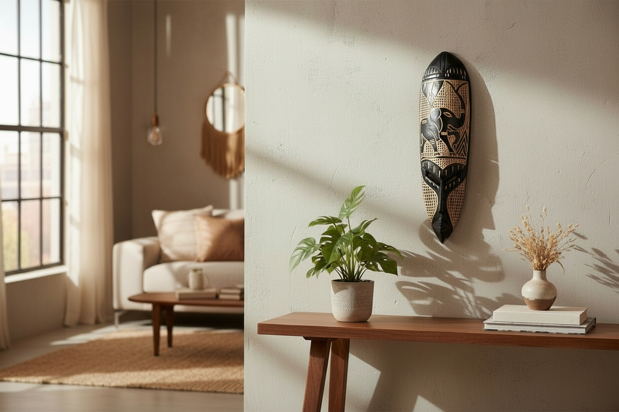 Experience the beauty and depth of Ghanaian culture with each handcrafted mask. Made from genuine Sese wood by our skilled artisan, Mr. Vitus Amoah, these masks display vibrant colors and intricate designs that capture the spirit of Ghana. Adorned with meaningful Adinkra symbols, each mask holds its own powerful story, making it a unique and inspiring addition to any space.