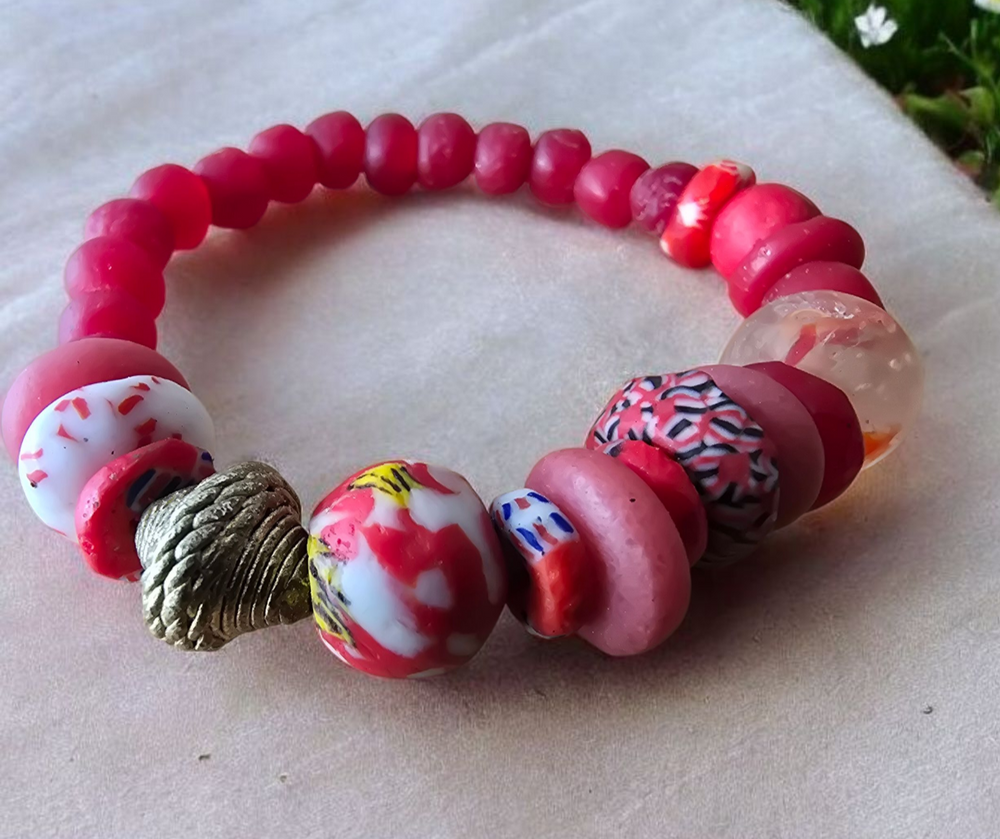 The hand-crafted process and unique blend of recycled glass beads give the Dzorlo Bracelet an incomparable style and one-of-a-kind beauty. With such traditional craftsmanship, it's a timeless piece to cherish and pass down. The process also results in natural variations in color and size, lending to the charm of these unique and timeless pieces.