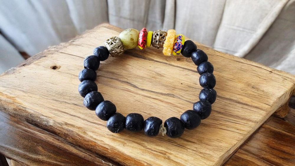 The hand-crafted process and unique blend of recycled glass beads give the Dzorlo Bracelet an incomparable style and one-of-a-kind beauty. With such traditional craftsmanship, it's a timeless piece to cherish and pass down. The process also results in natural variations in color and size, lending to the charm of these unique and timeless pieces.