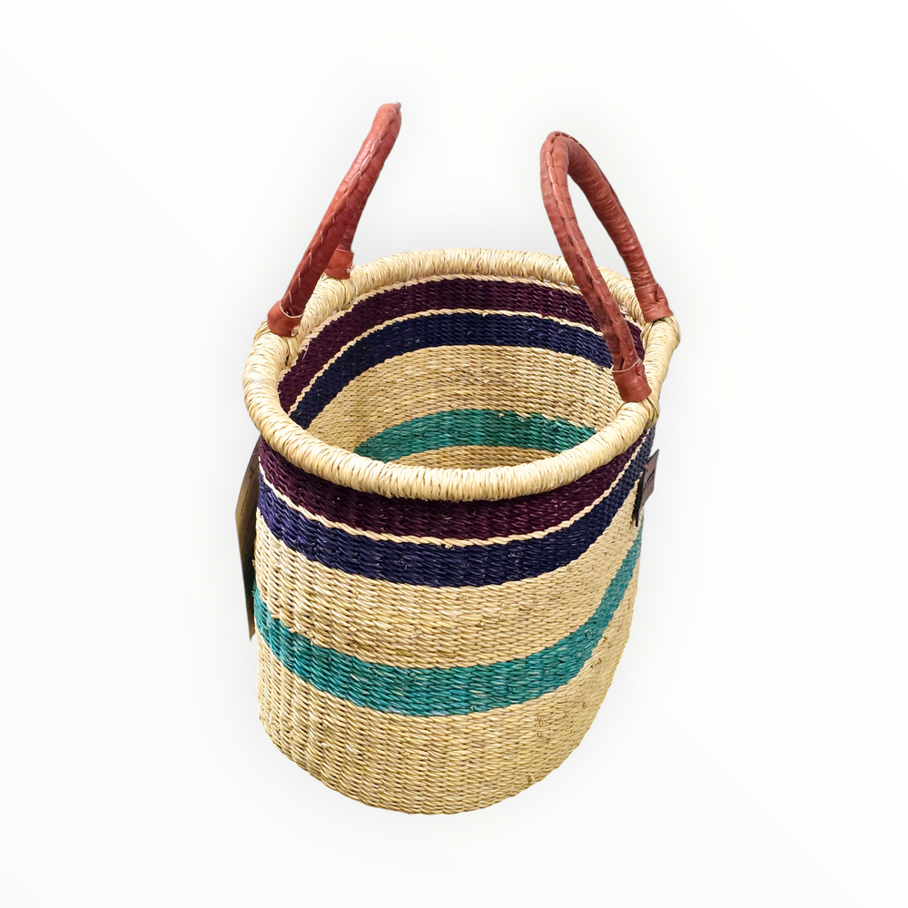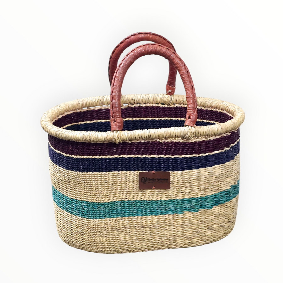 Our Bolga baskets and bags, a true reflection of the talent and skill of the women of Ayebase Collective, stand out with their unique shape and versatility. Traditionally used to carry produce to the market and from the farm to home, these baskets and bags now symbolize style and sustainability. The name "Bolga" is a tribute to Bolgatanga in the Northern Region of Ghana, where these unique pieces are woven.