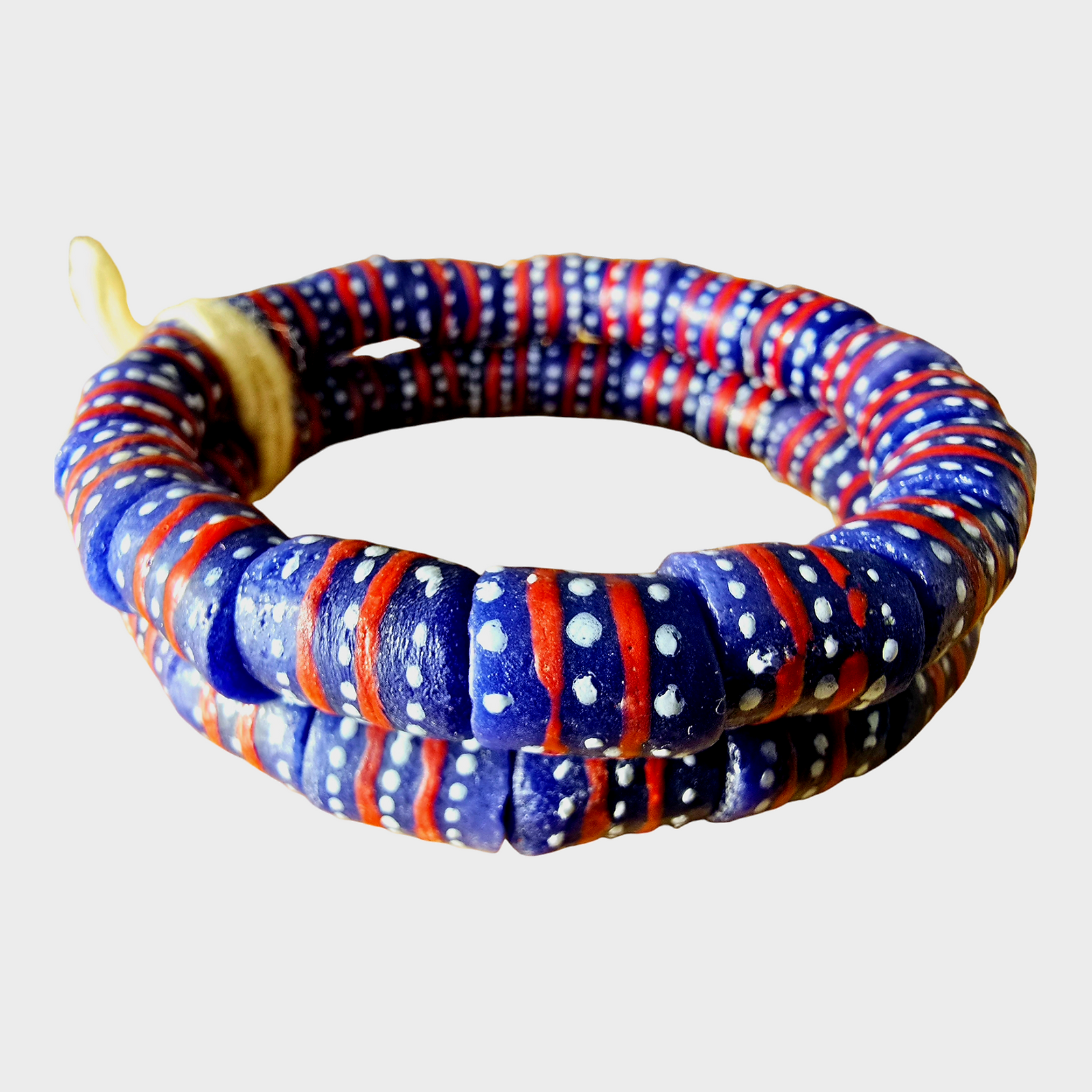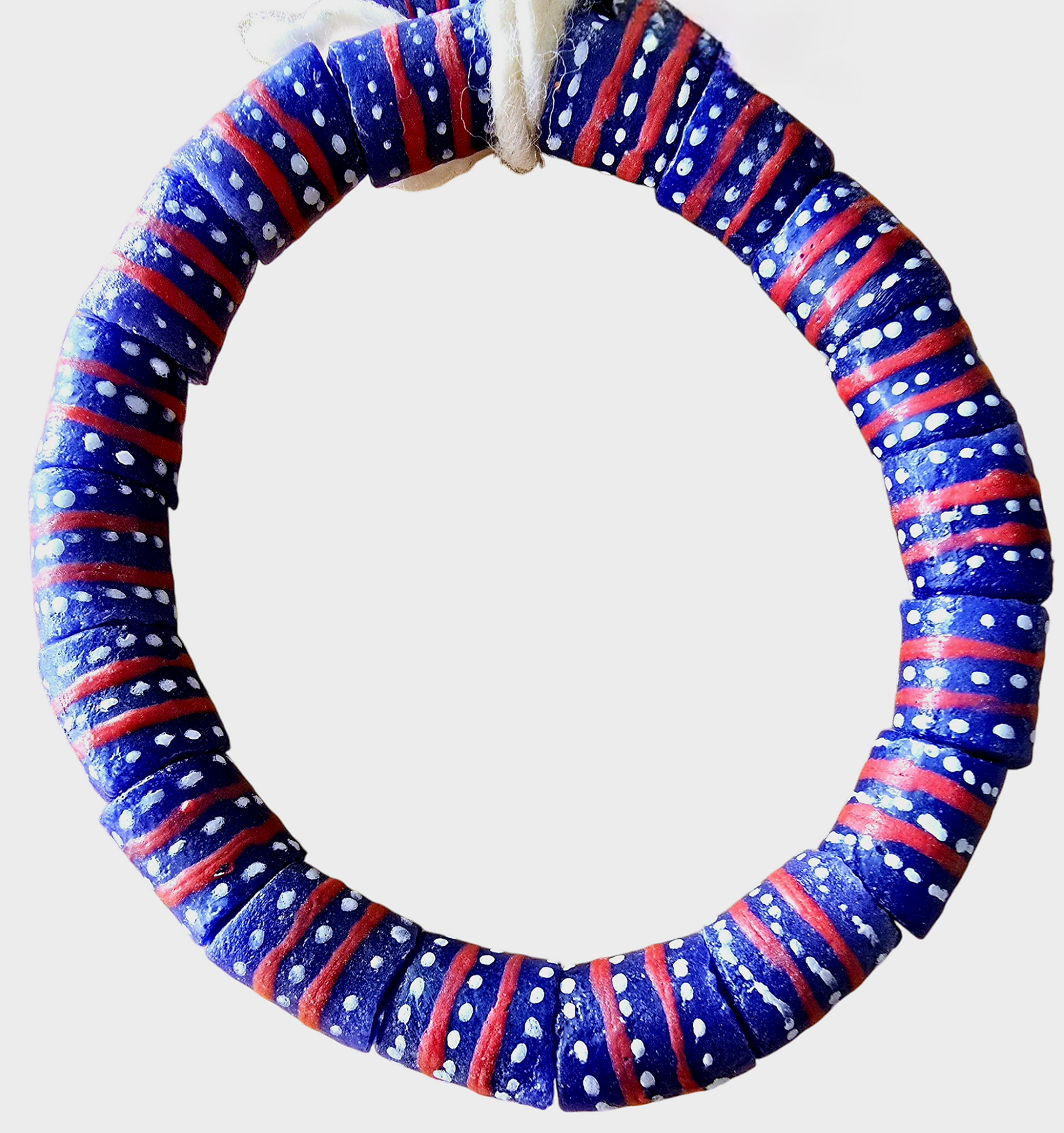These beautiful, handmade Krobo beads are crafted carefully by talented artisans in Ghana. Each bead is a tiny work of art. Hand-painted in vibrant colors and unique patterns, they bring Ghana's rich cultural heritage to life. Whether you wear them as is or use them in your creative projects, these beads carry the warmth and spirit of the hands that made them. Perfect for adding a touch of authenticity and meaning to any piece.